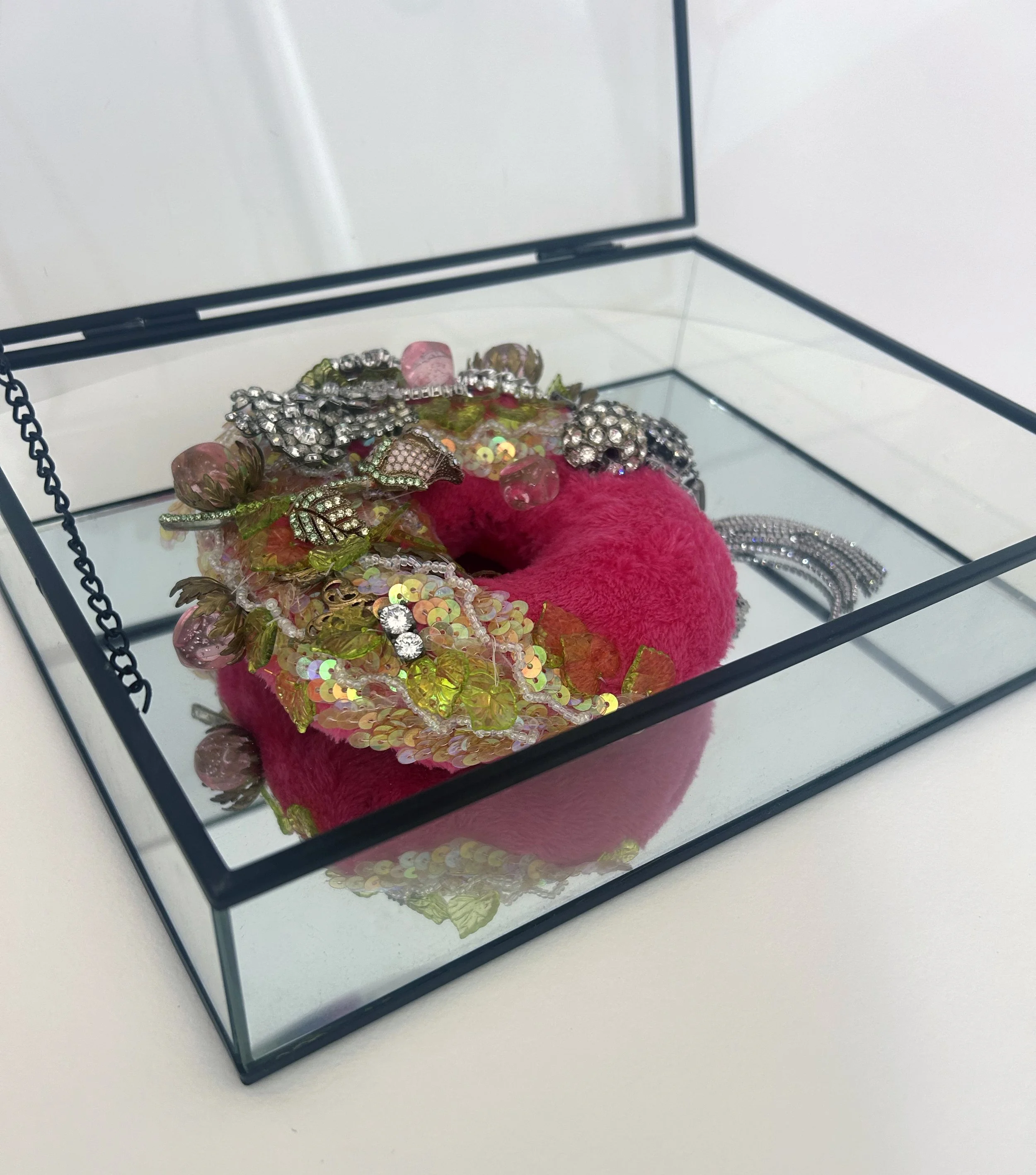 Curated by Naarm Textile Collective, this exhibition showcases the many textile artists working in Victoria and I was happy to contribute 2 works, Strawberry Donut (Pictured here) and The Royal Donut. 2 playful works that utilise broken and discarded fabric and jewellery.